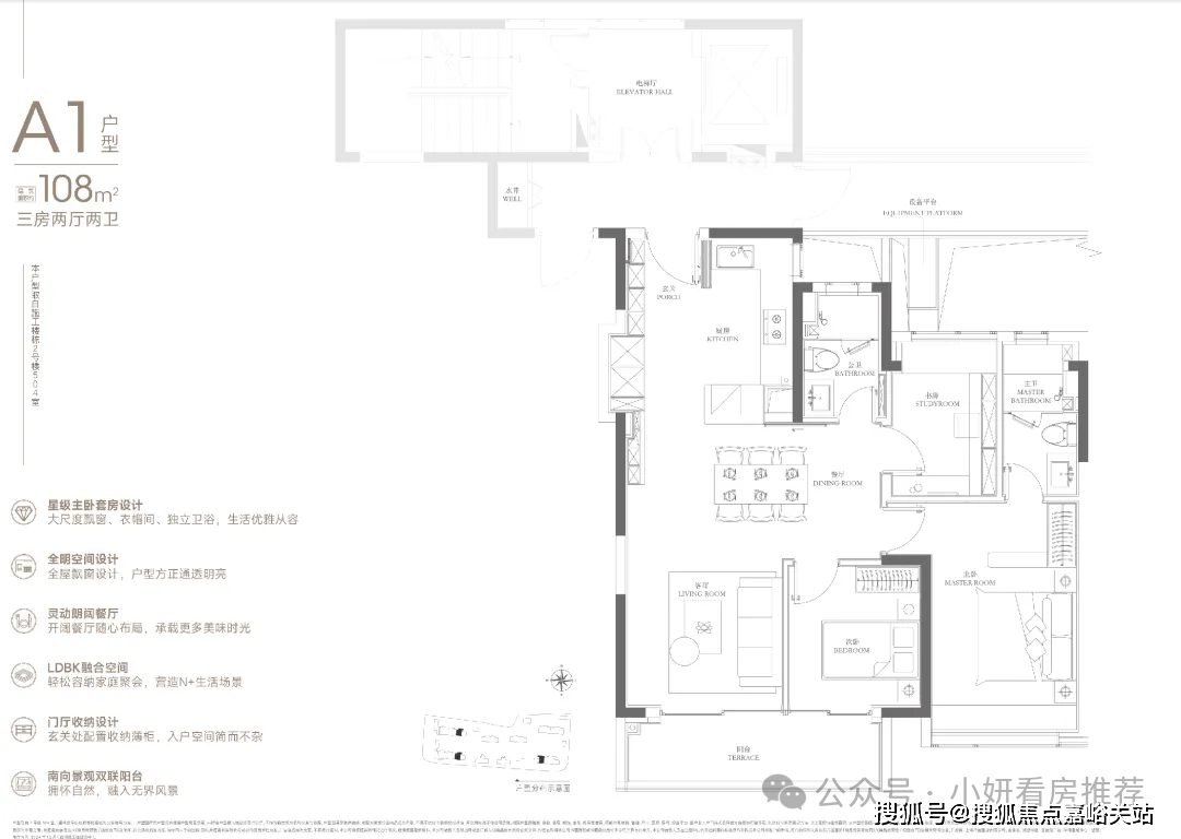 这个户型,入户玄关收纳、双开间的阳台、广大的U型厨房,和套房从卧带步入式衣帽间+全景式飘窗,是比力凸起的亮点。